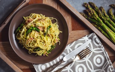 Лінгвіне зі спаржею та беконом — швидка паста на вечерю