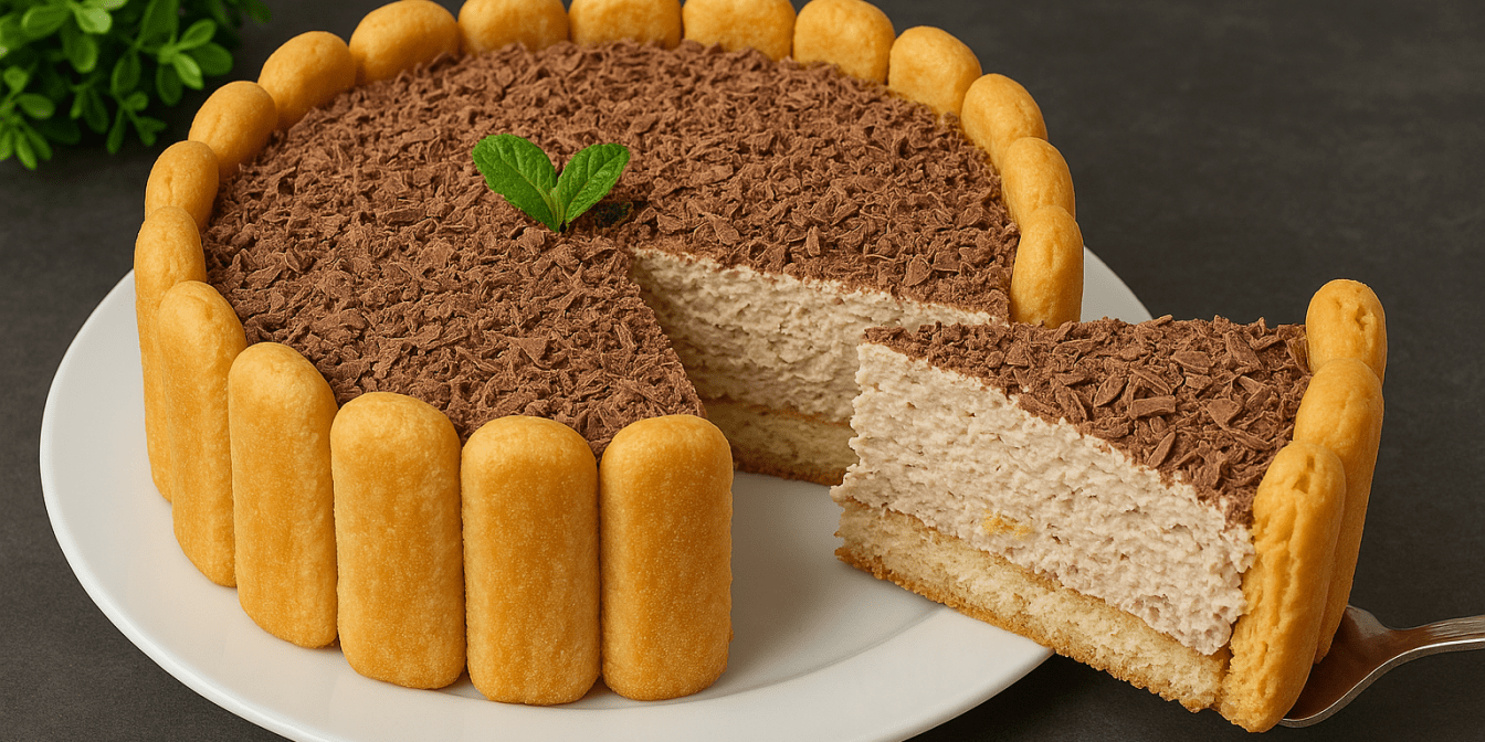 Формування цього торта трохи нагадує рецепт мандаринового тирамісу. З печива формуються бортики й дно, а середина заливається кремом.