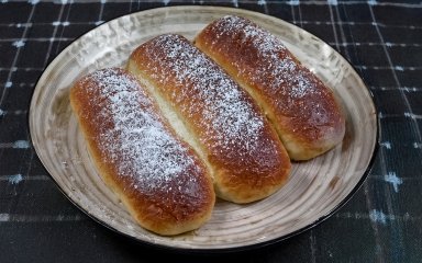 Готові булочки посипаємо цукровою пудрою. Смачного!