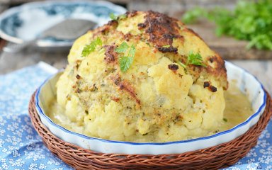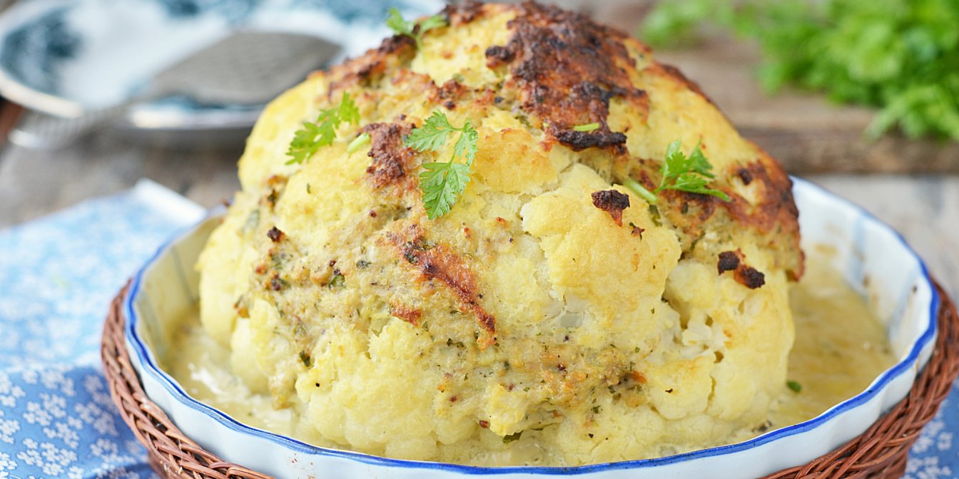 Запечена цвітна капуста з сирним соусом — це не просто овочевий гарнір, а повноцінна страва в ресторанному стилі. Капуста запікається до золотистої скоринки, а соус додає глибини й кремової текстури. Запечена капуста готується за 40 хвилин.