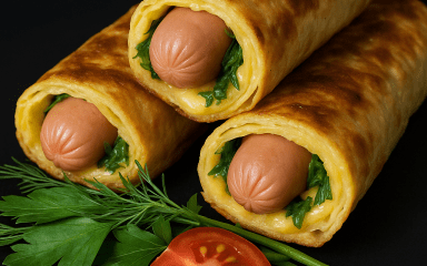 Сосиски й сир на сніданок або перекус? Це завжди надихає! Але чому б не приготувати їх по-новому? Візьми тонкий лаваш і молочні сосиски — із цих складників ми зробимо трубочки та обсмажимо в яєчному клярі. Ліниві сосиски в лаваші з додаванням сиру — справжній «Диво-сніданок», який ти приготуєш за лічені хвилини.