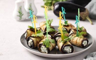 Запечені рулетики з баклажанів можна готувати з улюбленим твердим сиром або м’яким — моцарелою, фетою і бринзою. Дуже смачно, якщо покласти всередину тофу. А любителям східної кухні, порадимо покласти всередину рулетиків фету і волоські горіхи.