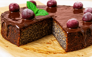 Маковий пиріг без борошна готується на основі маку, горіхів, какао та збитих яєць. Ця маса випікається, потім просочується вишневим сиропом і покривається розтопленим шоколадом. Такий маковий пиріг надзвичайно смачний і святковий на вигляд. Секрет його успіху — класична українська комбінація макового, горіхового та вишневого смаків.