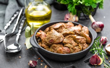 Спочатку її треба відварити до м’якості, а проціджений бульйон додамо в сковороду, де потушкуються субпродукти. Зверни увагу: під час варіння в каструлю треба влити трохи білого вина. Воно допоможе зберегти текстуру печінки й, звісно, дасть особливу смакову нотку.