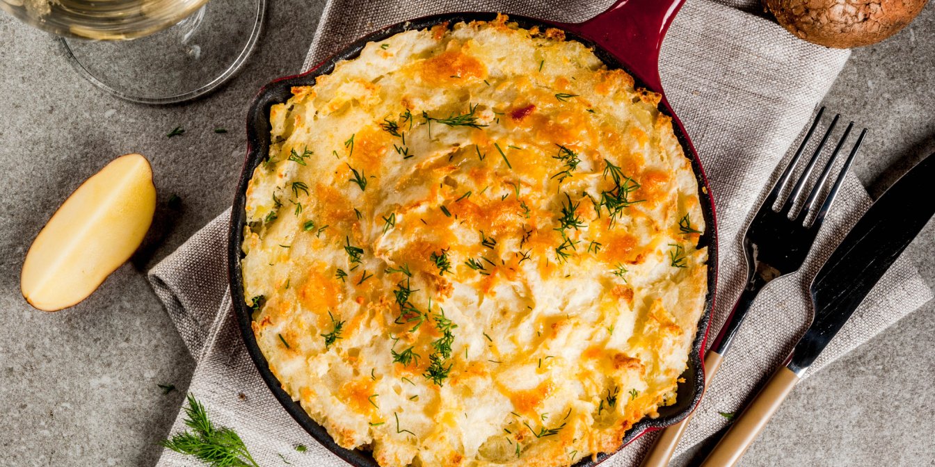 Важко знайти когось, хто відмовився б від картоплі — особливо коли між її шарами захований сир і шинка. Картоплю попередньо обсмажують разом із цибулею. Цибулю потрібно довести до м’якості й прозорості, хоча, як радить Володимир Ярославський, її можна зробити й хрумкою — злегка карамелізованою.