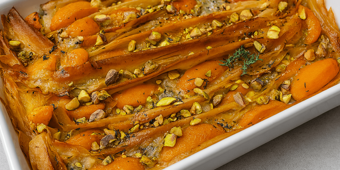 Це чудовий і швидкий рецепт, адже випічка з філо готується не довше 30 хвилин. Наш пиріг з абрикосами з тіста філо розкриється неповторним смаком завдяки невеликій кількості сиру з пліснявою.