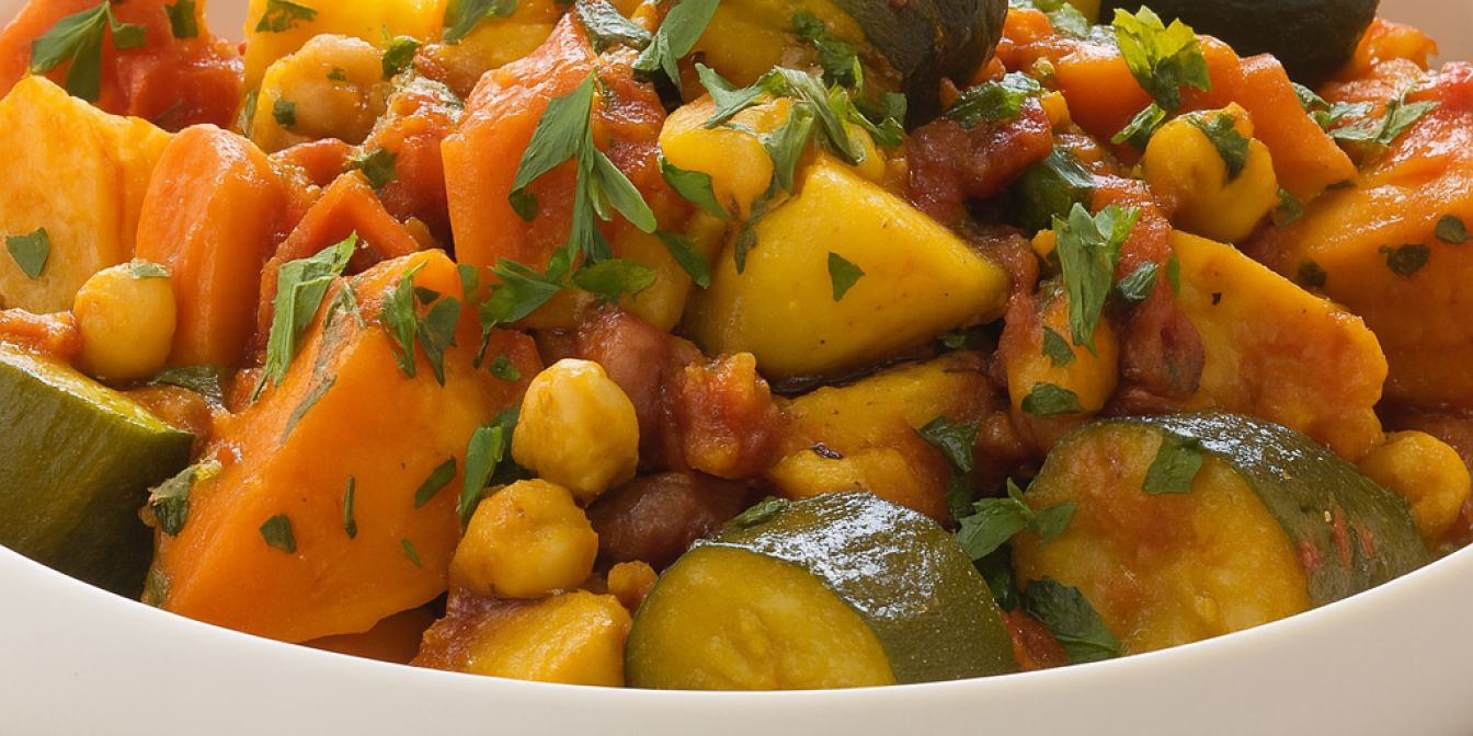 Овочеве рагу — одна з найуніверсальніших страв: ситна, корисна й напрочуд ароматна. А у марокканському стилі вона перетворюється на справжнє свято спецій і кольорів. Тут і класична картопля, і солодкий батат, нут, кабачки, соковиті томати, а ще прянощі, що створюють незабутній східний настрій. Зберігай новинку серед наших рецептів рагу, яку захочеться повторити не раз.
