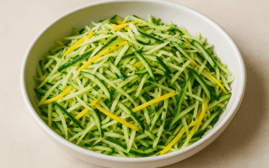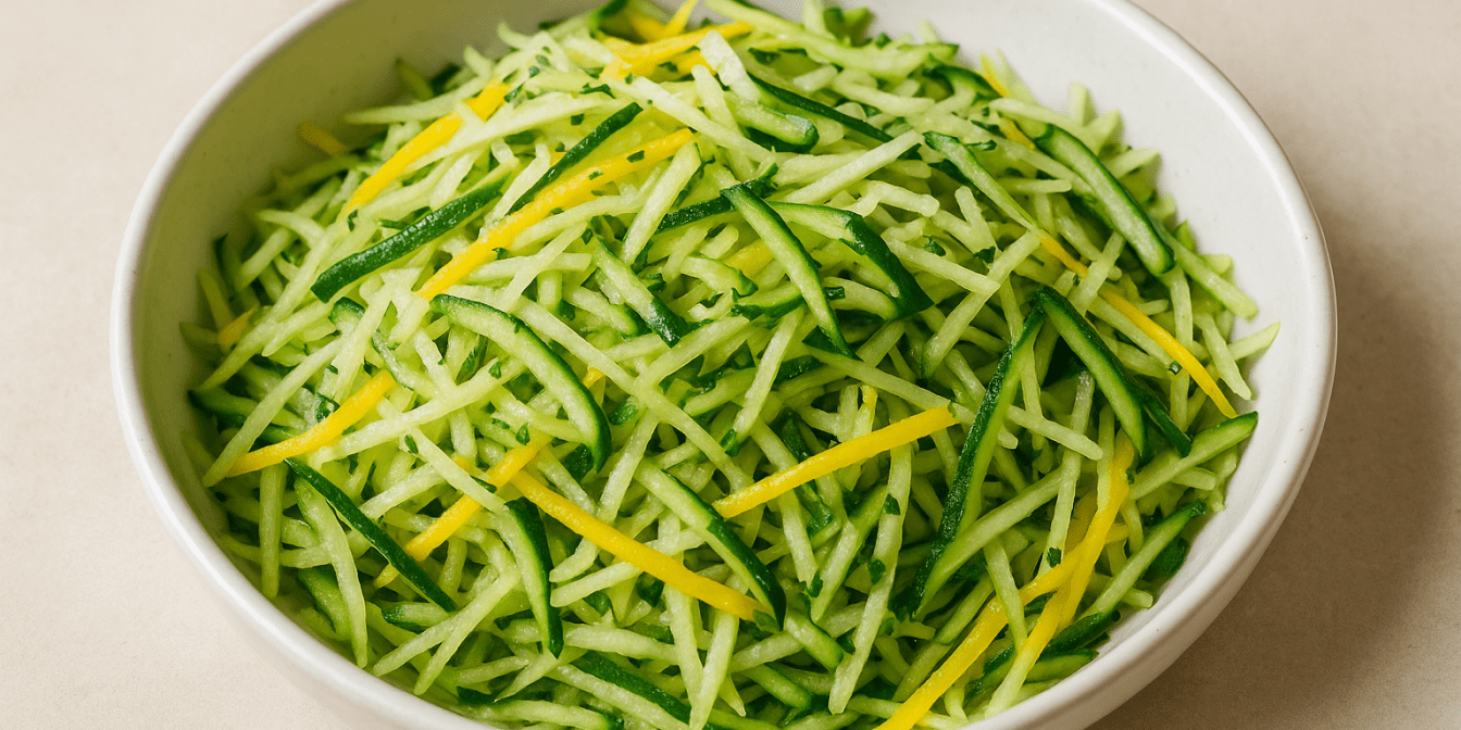Салат з сирим кабачком від фудблогерки Дарії Дорошкевич — приклад того, як із простих сезонних овочів можна зробити небанальну страву. Сирі кабачки, кольрабі та огірки утворюють хрусткий, злегка солодкуватий мікс. Нічого не потрібно варити чи смажити — лише натерти та заправити. Як приготувати смачний салат із кабачків?