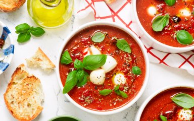 Суп подаємо з моцарелою та підсмаженою чіабатою. Тож густий томатний суп чудово доповнюється ніжністю моцарели та хрусткими скибками чіабати. Прикрашений духмяним базиліком, наш суп стане прекрасним літнім обідом — запашним, смачним, поживним і при цьому легким!