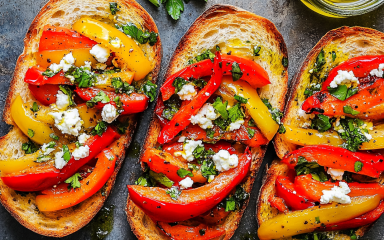 Таку закуску з перцю подають на хрумких тостах з білого або цільнозернового хліба. Це чудовий варіант корисного сніданку чи апетитна страва для пікніка.