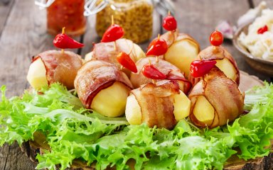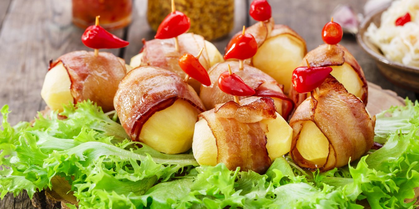 - бекон вибирай тонко нарізаний — так він краще загортається навколо картоплі;