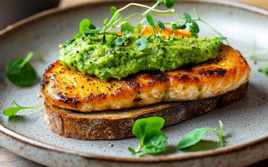 Брускета з фореллю — легка закуска з теплим овочевим пюре