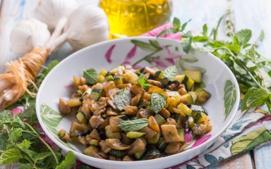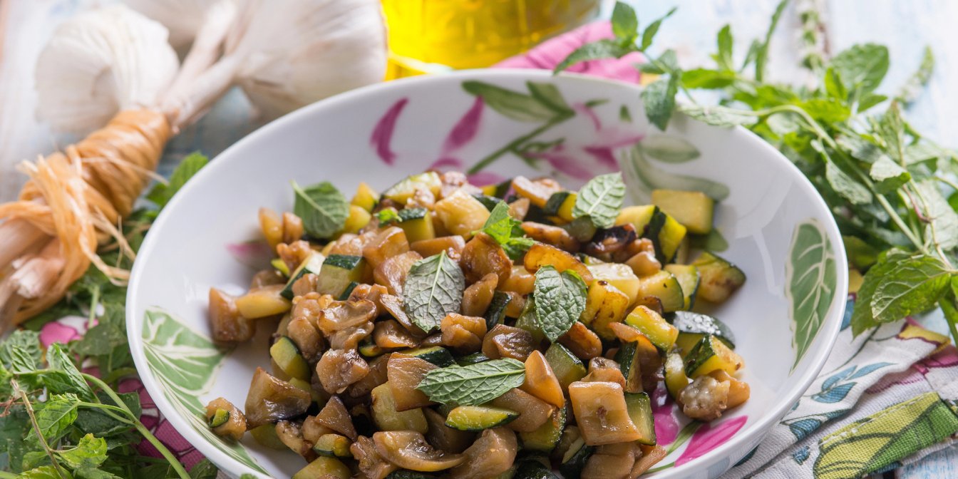 - На відміну від овочевих соте, в нашому рецепті використовуються тільки баклажани, спеції та олія для смаження.