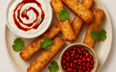 Приготовлені на основі халумі сирні палички з йогуртом і гранатом — це хрустка та пікантна страва, яку легко приготувати вдома. Завдяки поєднанню солоного сиру, гострих спецій і кисло-солодких смаків ця сирна закуска урізноманітнює раціон і має цікаву текстуру. Такий рецепт паличок із сиру халумі особливо сподобається тим, хто шукає безглютенові або вегетаріанські варіанти для перекусу.