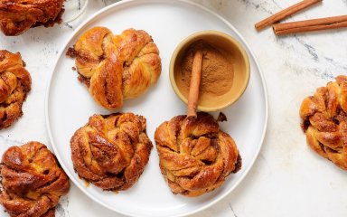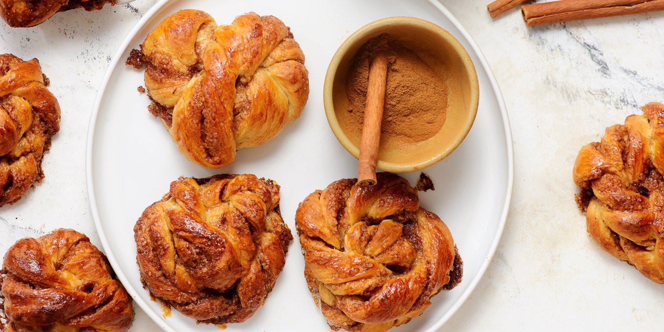 Шведські булочки з корицею — це класичні булочки на дріжджовому тісті, скручені у форму вузлика або рулетика та щедро посипані цукром і спеціями. У рецепті використовують м’яке дріжджове тісто, а начинка складається з вершкового масла, кориці та цукру. Така випічка зі спеціями має характерний аромат і текстуру.