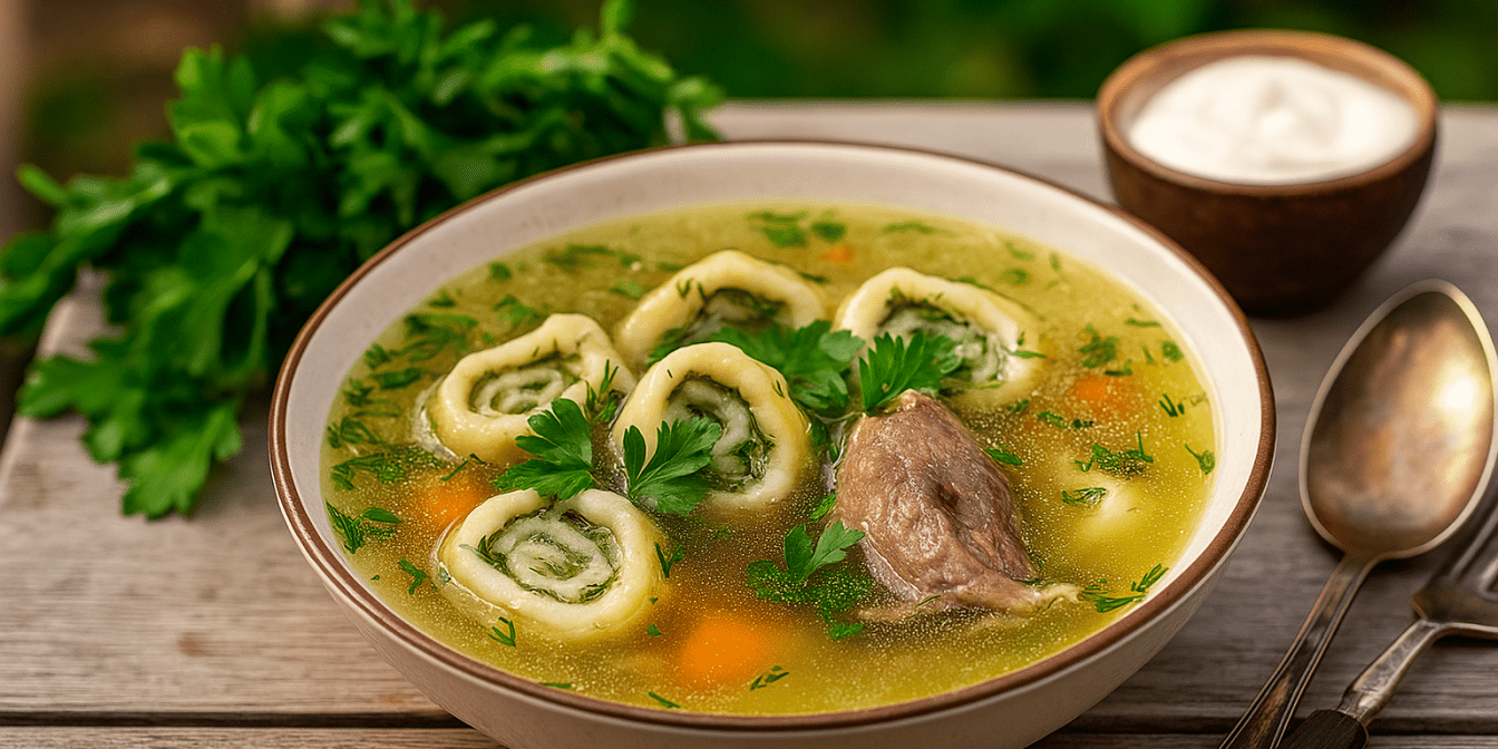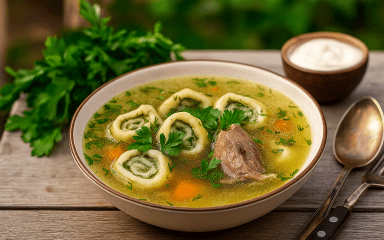 Суп з рулетиками — це домашній варіант бульйону з мініатюрними рулетиками з тіста та кропу, які замінюють класичні галушки. Така перша страва виходить ароматною та поживною, а готується з доступних інгредієнтів. Рецепт супу з кручениками з тіста підійде тим, хто хоче урізноманітнити меню та спробувати новий спосіб подачі бульйону.