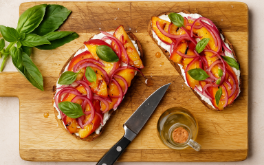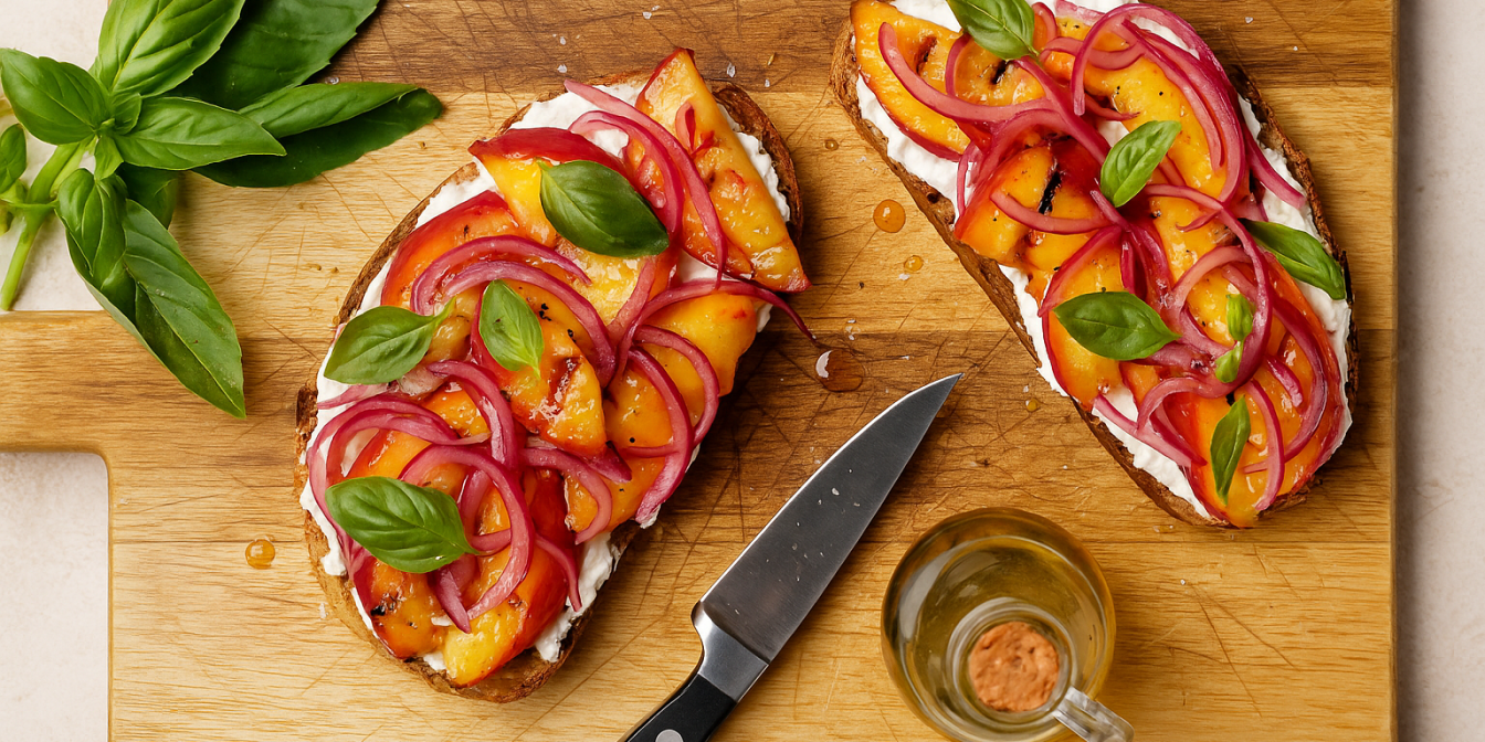 Тост з нектаринами на грилі — це корисний бутерброд для літнього меню. Він поєднує солодкий смак фруктів і меду з пікантною маринованою червоною цибулею. Готується грильований тост за кілька хвилин і добре пасує до легкого обіду або закуски.