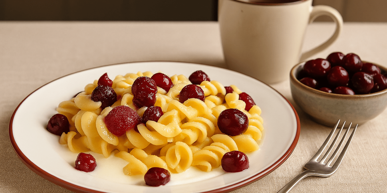 Макарони зі смаком лінивих вареників — це незвична комбінація, у якій класичні макарони перетворюються на солодкий десерт. У цьому рецепті поєднано смачну пасту з вишнями, йогуртом і кислим сиром, щоб отримати смак, схожий на улюблені ліниві вареники. Такий варіант підійде для тих, хто любить солодкі макарони та хоче швидко приготувати знайому з дитинства страву.