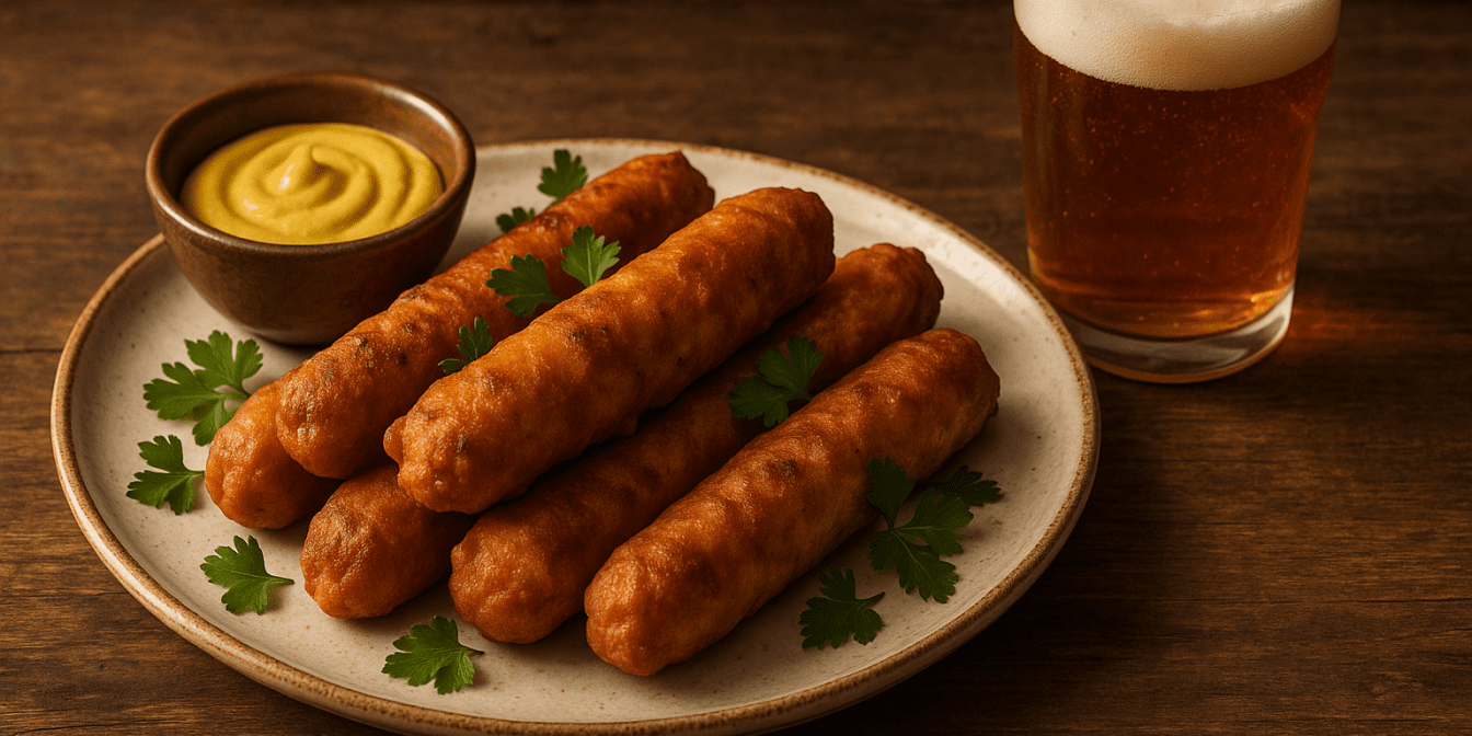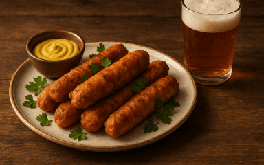 Сардельки в пивному клярі — це класична закуска на основі сосисок у варіанті з пивним кляром, який робить поверхню золотистою та хрусткою. Страва швидка у приготуванні і підходить для розслаблених вечорів та святкових застіль.