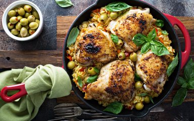 Дієтичний кролик з оливками — це варіація традиційних страв із кролятини, де оливки додають легку кислинку та насиченість смаку. Завдяки використанню розмарину м’ясо кролика набуває виразного аромату, а кедрові горішки та родзинки вносять делікатну солодкувату нотку.