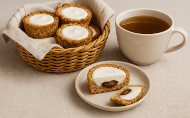 Вівсяно-арахісовий кошик з кисломолочним сиром — це страва, яка поєднує м’якість вівсяних пластівців та горіхів із ніжною кисломолочною начинкою. Цей десерт-кошик з шоколадною начинкою можна приготувати заздалегідь і подати дітям як корисний перекус чи до чаю. Рецепт десерту без доданого цукру простий у виконанні та не потребує складних інгредієнтів.
