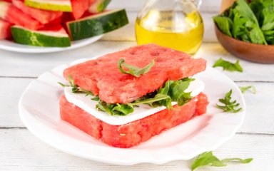 Сендвіч із кавуном і фетою — це страва, де замість класичного хліба використовуються скибки кавуна. У поєднанні з маринованою фетою та зеленню він створює свіжий і водночас поживний варіант сендвіча.