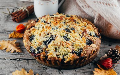 Сливовий пиріг з горіхами та шоколадом — сезонна домашня випічка