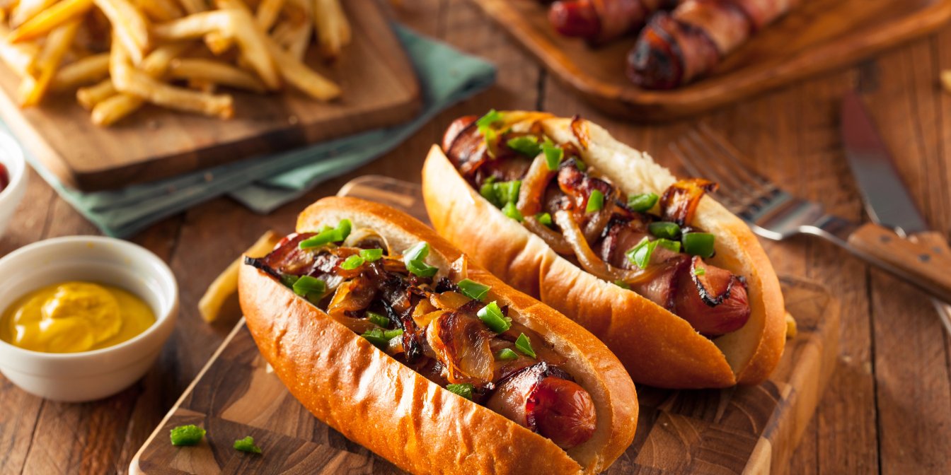 Хот-доги на грилі — це поєднання соковитих сосисок, підрум’яненої булочки і апетитних додатків. Такий формат вуличної їжі легко відтворити вдома. Щоб зробити страву з хот-догами цікавішою — додай бекон, сир і халапеньйо для ще більш насиченого смаку.