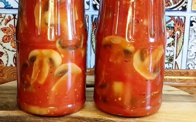Мисливський салат на зиму з грибами готується з томатів, болгарського перцю та печериць. Заготівлю легко готувати та зберігати у банках протягом кількох місяців. Приготуй мисливський салат на зиму і завжди матимеш під рукою смачну закуску.