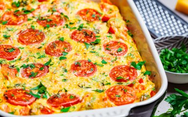 Постав у духовку при 180 °C на 15 хв, потім посип тертим сиром і готуй ще 10 хв до золотистої скоринки.