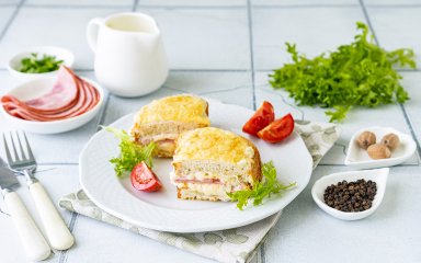 Легендарний французький бутерброд із шинкою та сиром під соусом бешамель, який запікається до золотистої скоринки. Приготуй його вдома й потіш себе класикою паризьких бістро.