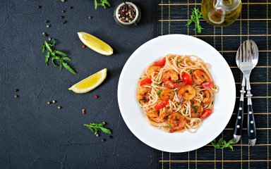 Паста з креветками та вʼяленими томатами — простий італійський рецепт