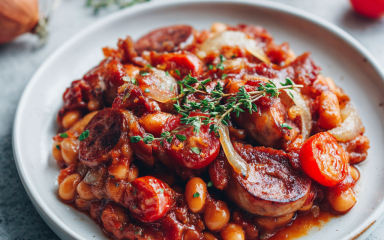 Квасоля з ковбасками й беконом — це навариста страва, яку можна приготувати на обід або ситну вечерю. Такий варіант квасолі з копченостями готується без особливих зусиль, а в результаті отримуємо смачну та поживну їжу.