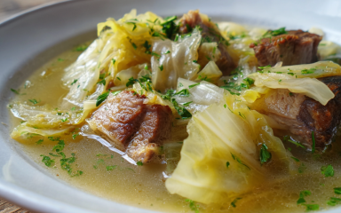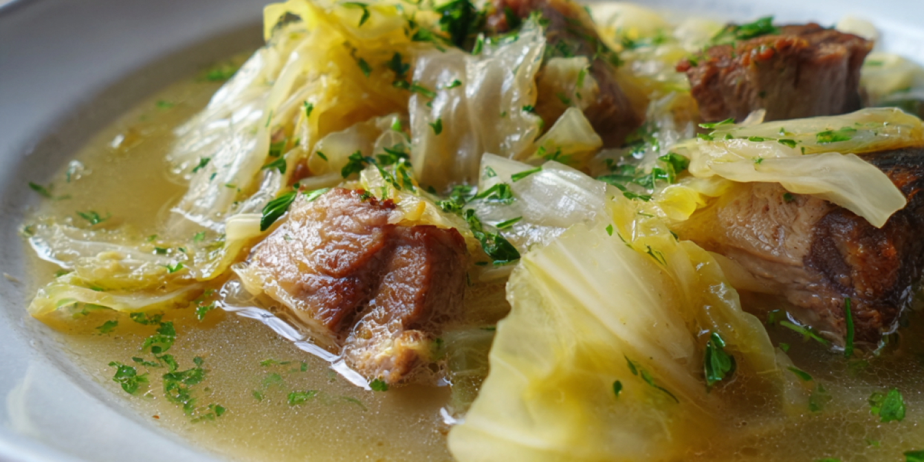 Капуста-пелюстка з м’ясом — це страва, де маринована капуста поєднується з реберцями та овочами. Для бульйону краще використовувати м’ясо на кістці (ребра, рульку чи окіст) — воно дає насичений смак.