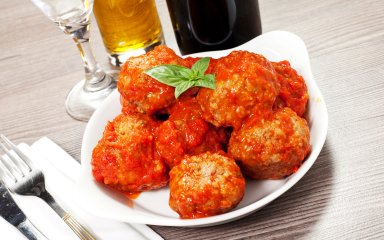Виклади фрикадельки на тарілку, прикрась свіжим базиліком і подавай гарячими.