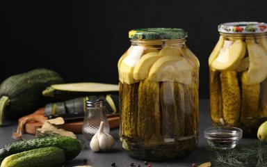 - огірки та кабачки консервовані можна подавати як самостійну закуску чи гарнір.