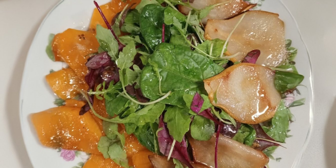 Теплий салат з гарбузом та грушею — рецепт осінньої страви з карамелізованим акцентом