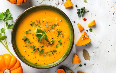 Король осені — гарбузовий суп. Запечи або звари гарбуз і ще кілька овочів, перебий блендером, додай вершки або бульйон — і готово!