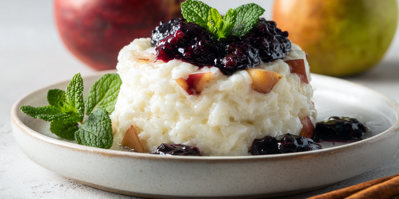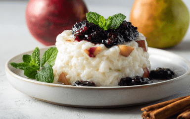 Рисовий пудинг поширений у багатьох країнах Європи та Азії. Його варіації зустрічаються від Великої Британії до Індії, де рис готують у молоці з різними спеціями. Восени до пудингу можна додавати сезонні фрукти, зокрема в цьому рецепті ми використаємо сливи, яблука та груші. У цьому десерті немає глютену, горіхів та яєць.