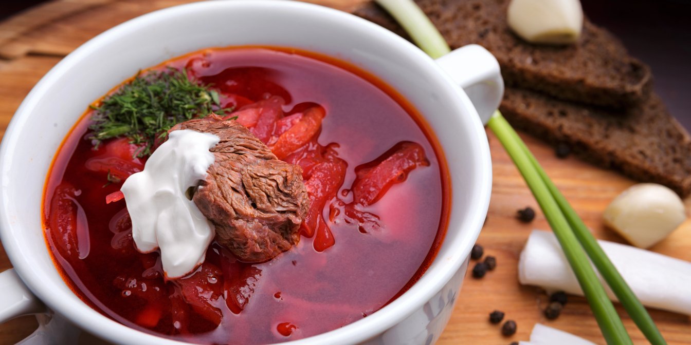 Борщ з яловичиною і баклажанами — ситна страва з незвичним акцентом
