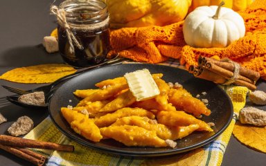Здивувати рецептом вареників не так і просто справжнього любителя української кухні. Аж поки ти не спробуєш приготувати гарбузові вареники з картоплею. Начинка тут цілком традиційна. А от у тісто для вареників тут додається гарбузове пюре, яке робить його яскравим і надає цікавого солодкавого присмаку.