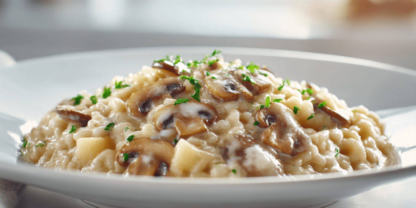 Вершкове ризото з картоплі та грибів — це ніжна італійська страва з українським акцентом, яку готують без рису, але зберігають кремову текстуру класичної страви. Тут поєднуються картопляні кубики, обсмажені гриби та вершковий соус. Такий рецепт ризото з картоплею підходить для тих, хто хоче спробувати щось нове.