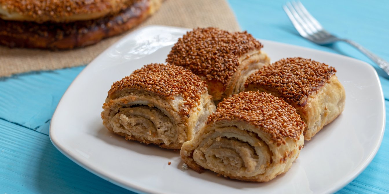 Виклади рулетики на пергамент, за бажанням змасти жовтком і присип горішками зверху.