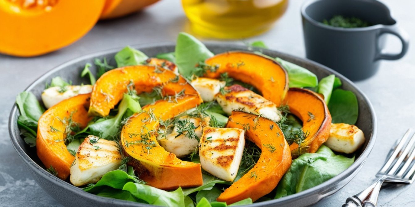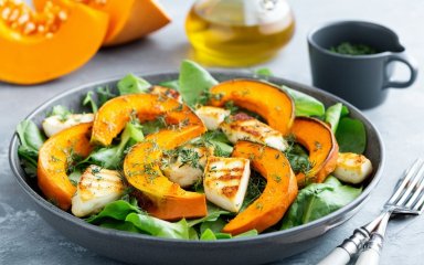 Знайомся з рецептом теплого салату з гарбузом і сиром халумі