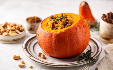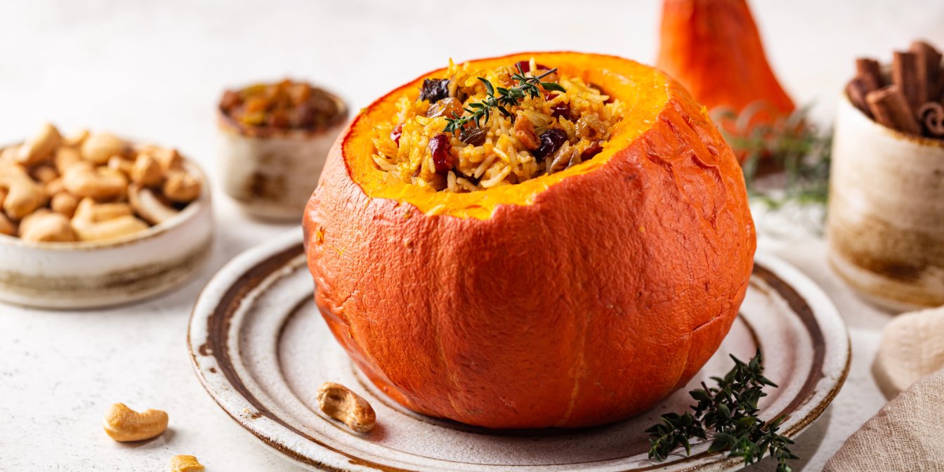 Гарбуз, фарширований рисом, кабачками та сухофруктами — страва для осіннього раціону