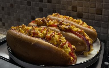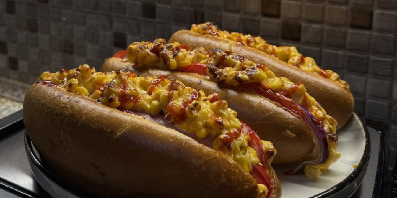 У рецепті хот-дог з кукурудзою акцент не лише на сосисці, а й на начинці: кукурудза швидко прогрівається у вершковому маслі, а комбо з плавленого й тостового сиру дає ту саму тягучу текстуру. Сосиски варто надрізати «ялинкою» — так вони рівномірно підсмажуються й краще тримають соус. Наприкінці хот-доги коротко допікаються при 180 °C: булочка підсихає, сир стабілізується — їсти зручніше, нічого не витікає.