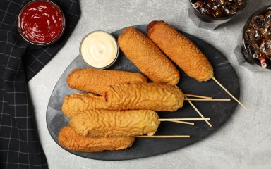 Так, в них ти впізнаєш американський фастфуд — сосиски корндог. Кляр замішуємо на молоці та борошні. Фудблогерка curly__recipes пропонує альтернативу: взяти пшеничного та кукурудзяного борошна в пропорції 1:1.