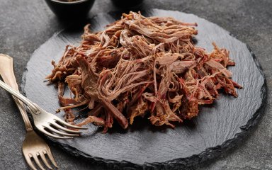 Рвана телятина — це ніжне м’ясо, яке легко розпадається на волокна після тривалого томління під фольгою. У цьому рецепті телятини робимо швидкий томатно-часниковий маринад із соєвим соусом та яблучним оцтом, запікаємо 3 години і обов’язково поливаємо соком, що утворився. Приготуй — і матимеш універсальну основу для бургерів, сендвічів, рисових або картопляних боулів.