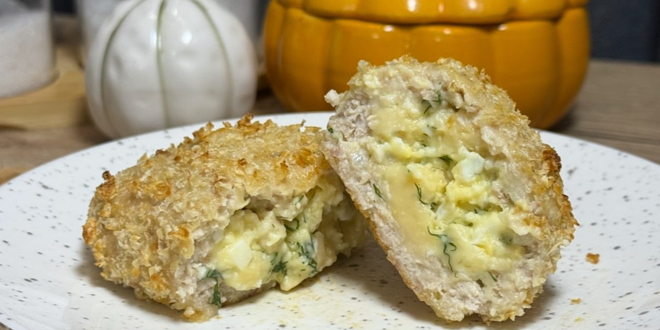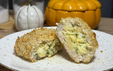 Збий яйце з 30 мл води й щіпкою солі, всип 30 г борошна — має вийти рідкий кляр. Кожен бургер швидко вмочи в кляр, потім обваляй у 40 г панко.