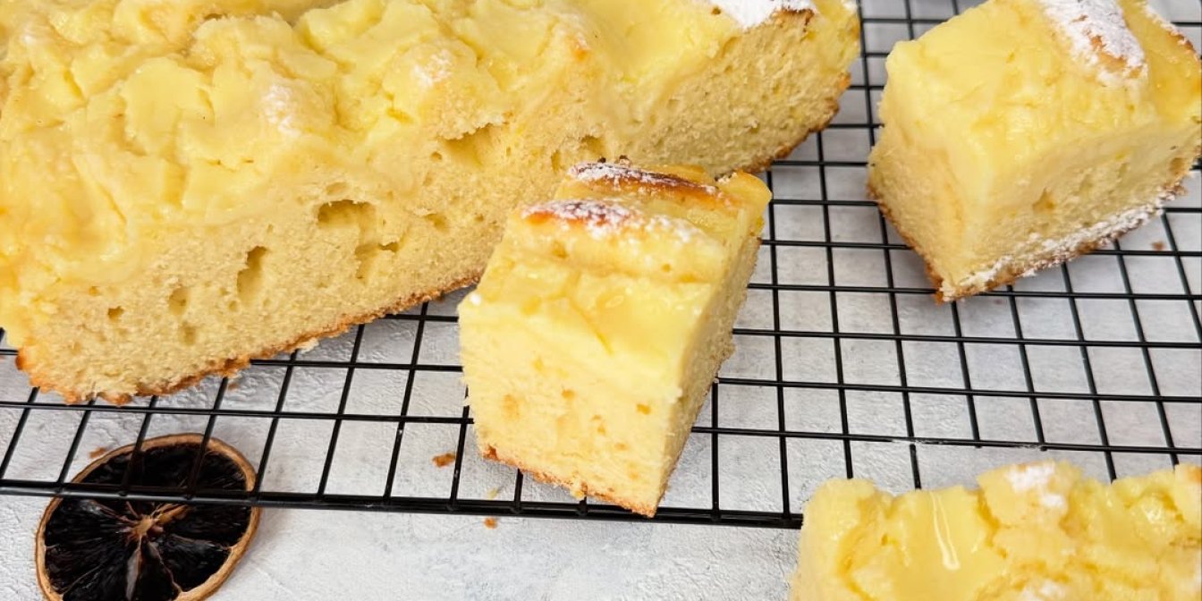 Це ще один доступний у приготуванні лимонних пирогів і кексів. Лимонний пиріг з кремом — по суті, пишний бісквіт, вкритий кремом, який запікається разом з тістом. Крем зробимо з масла, яєць і молока.